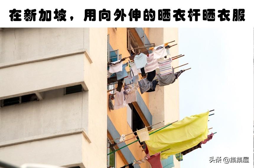 3、在新加坡,用向外伸的晒衣杆晒衣服